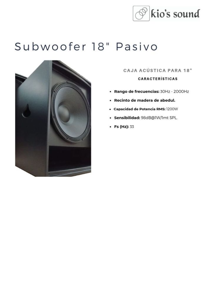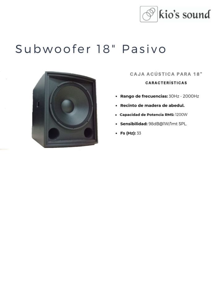 KIO’S SOUND ST118R SUBWOOFER PASIVO 18″